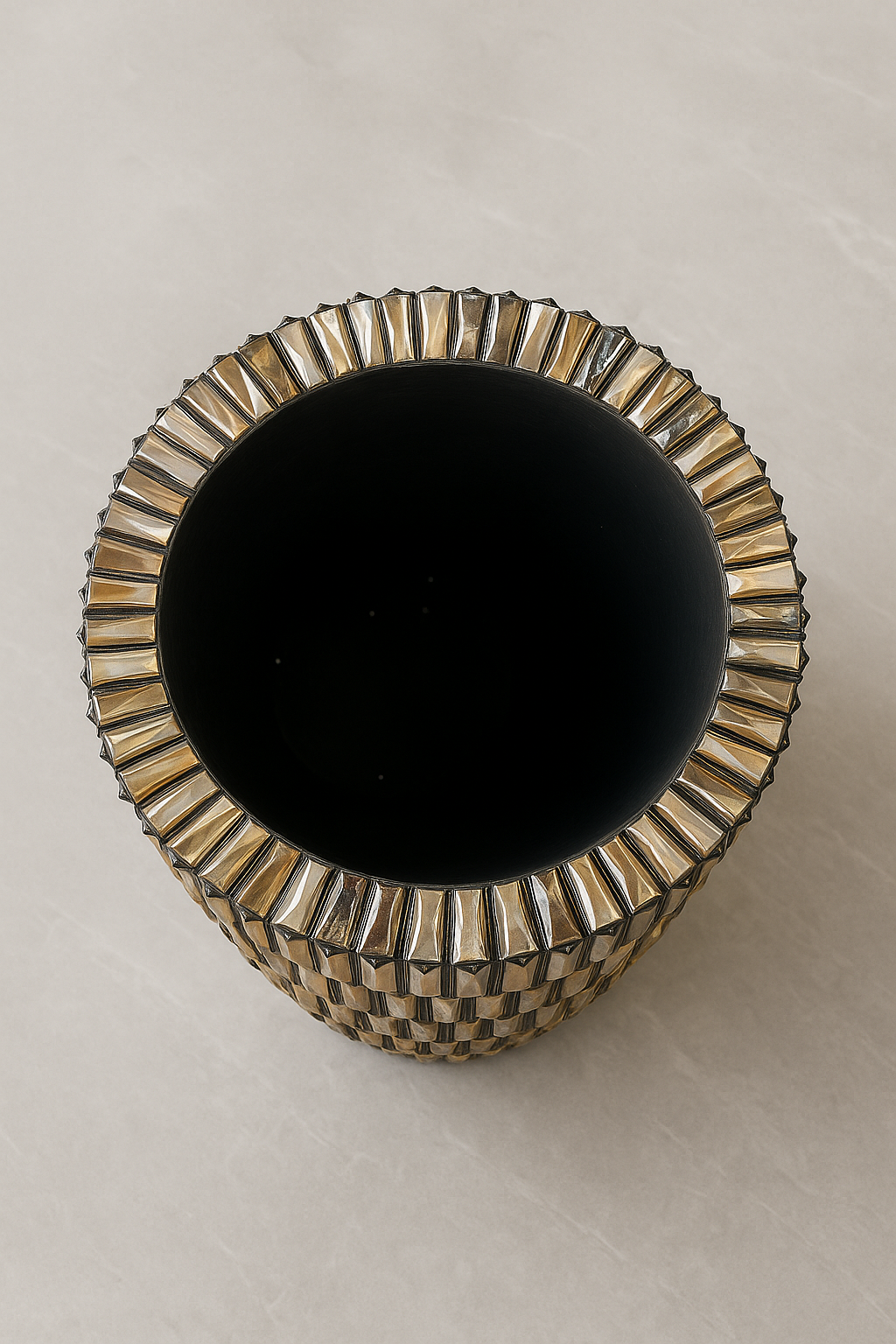 Elevate your interiors with this artisanal tall vase, crafted from pottery clay and adorned with hand-laid resin pieces for a rich, textured finish. Perfect for dried arrangements or as a luxury standalone statement.