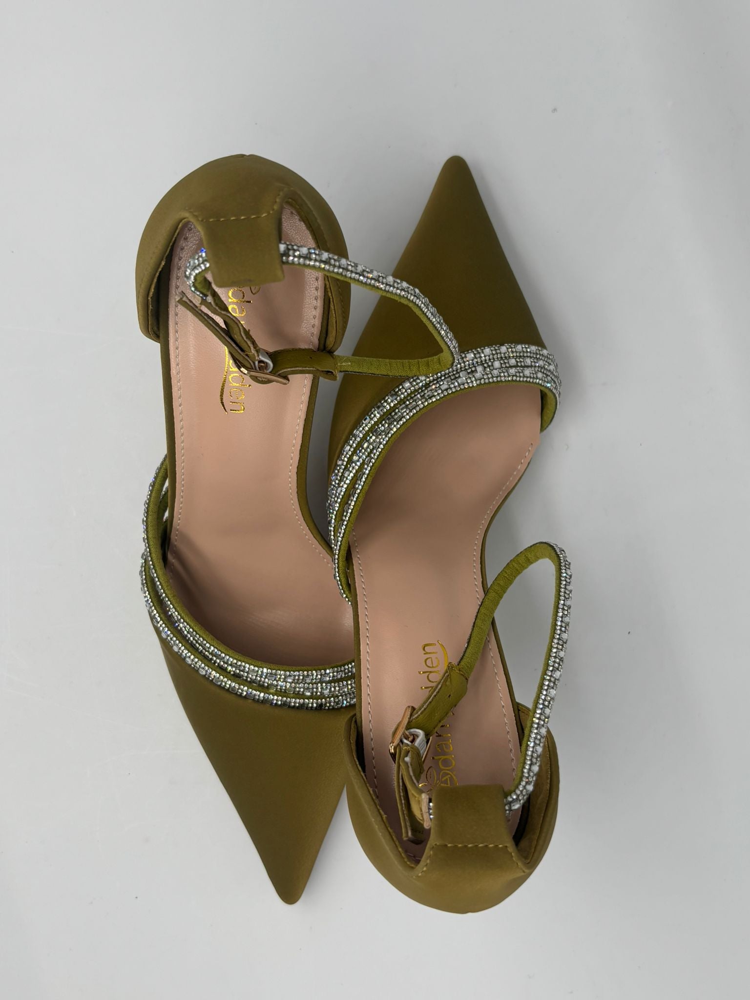 Step into timeless elegance with these pointed-toe heels featuring sparkling rhinestone straps and a chic ankle buckle design.