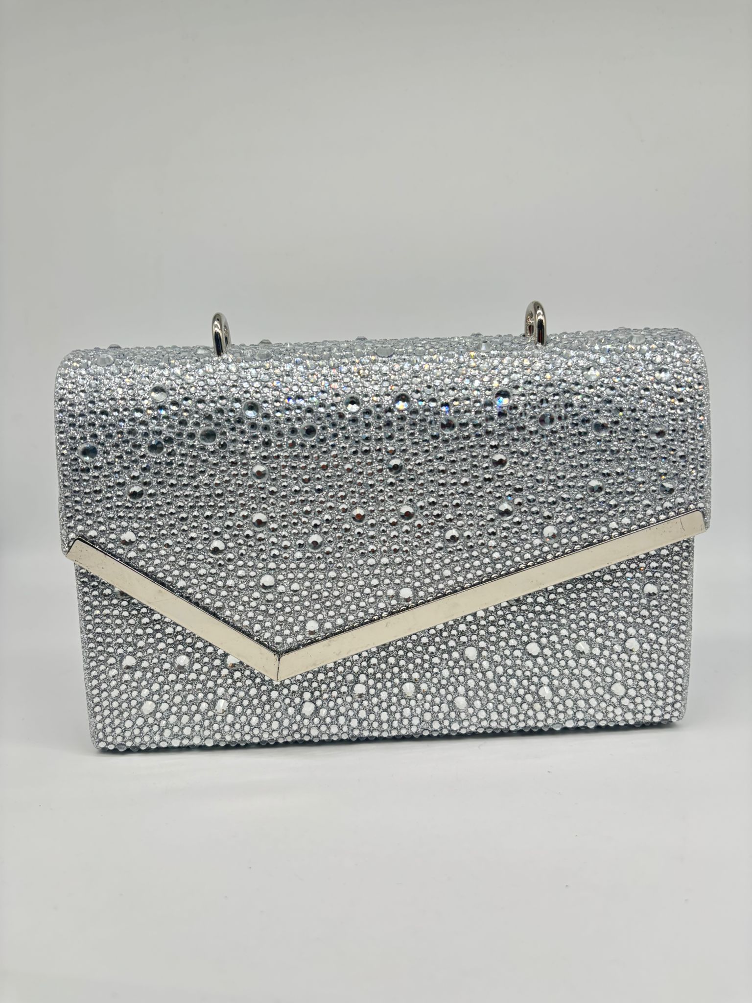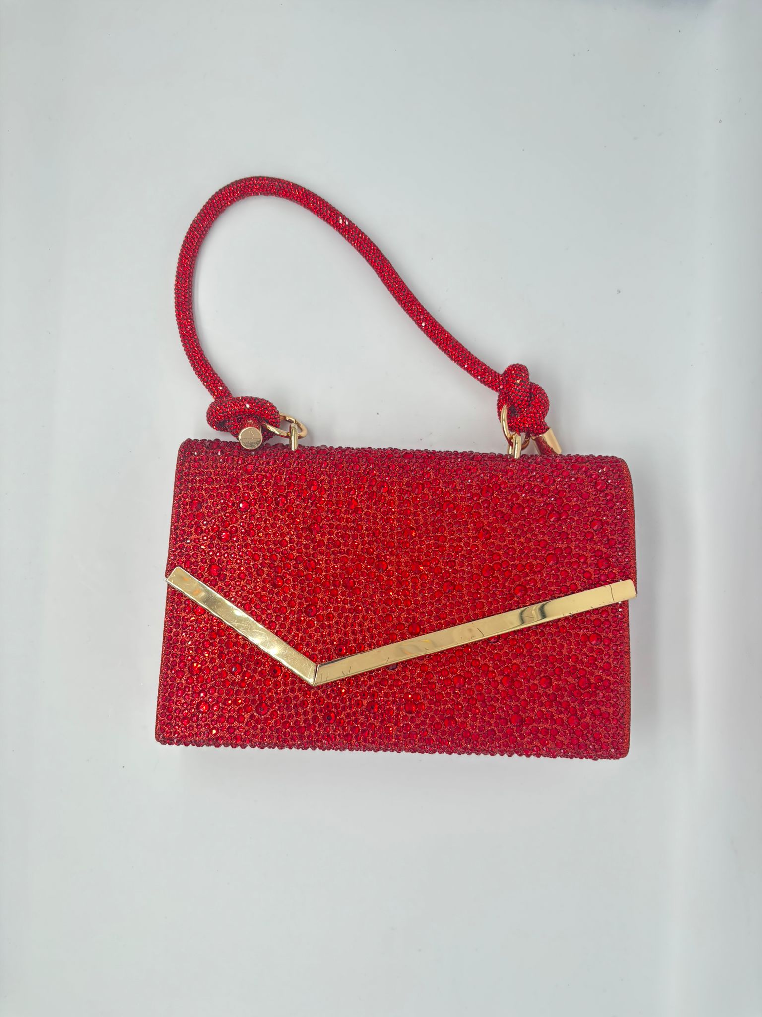 Add instant elegance to any outfit with this stunning rhinestone evening clutch. Featuring a modern V-shaped gold accent, this clutch is perfect for weddings, parties, and special occasions. Available in multiple vibrant colors to match your style.