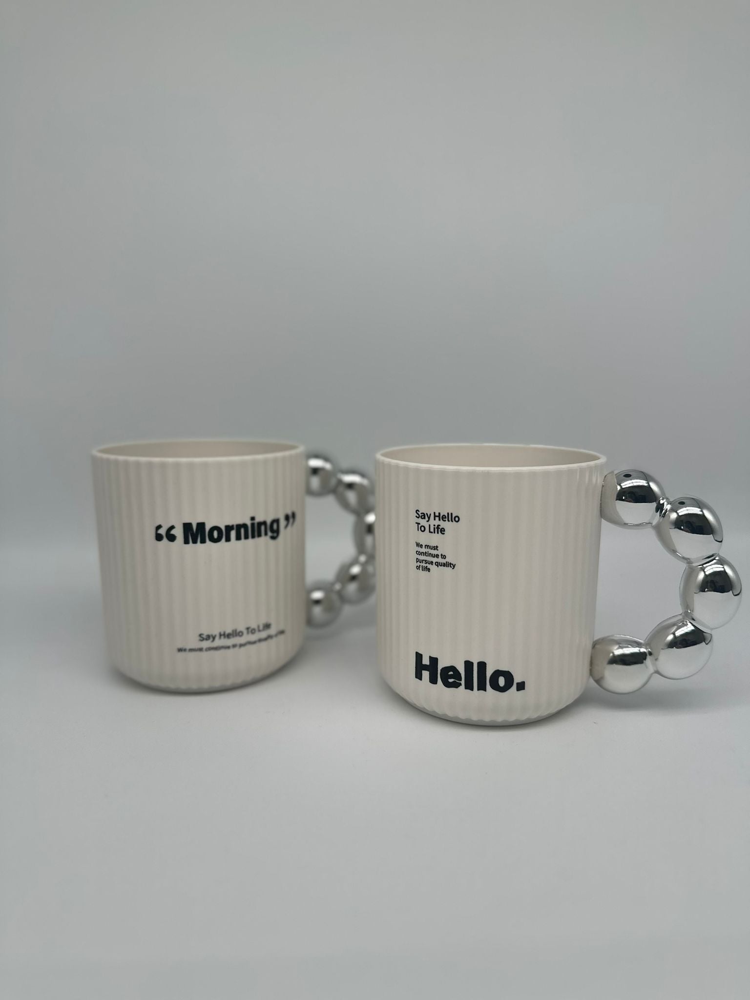 Stylish Morning & Hello Plastic Mug Set – 350ml